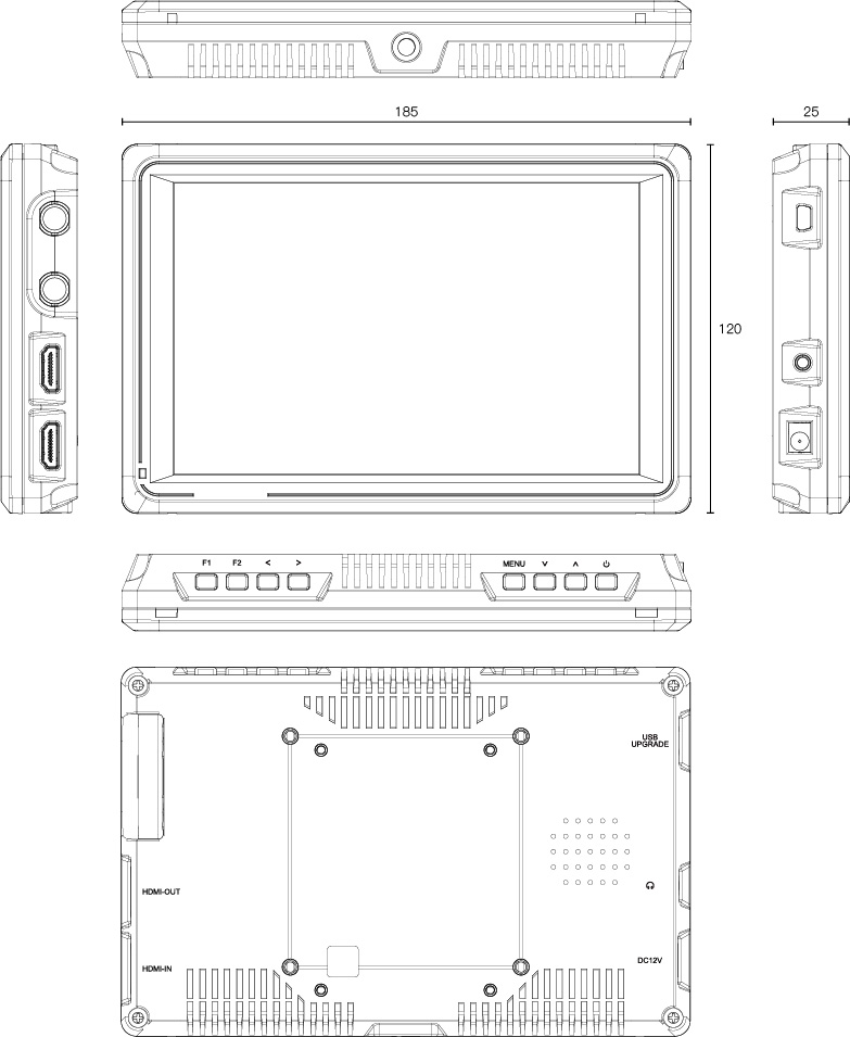 The compact design of the FW279S includes 4K HDMI in/out and 3G-SDI in/out so you can connect them to virtually 4K cameras and DSLRs! The HDMI connection is compatible up to 4Kp30, the SDI connection up to 3G. You can also monitor audio using the 3.5mm stereo headphone jack or, the built in speaker.